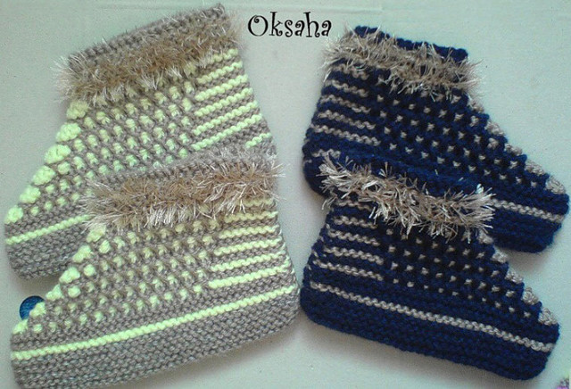 Тапочки спицами , описание , МК