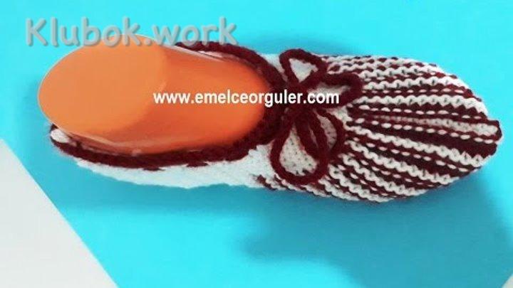Тапочки спицами , укороченными рядами