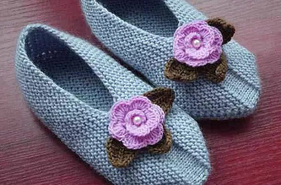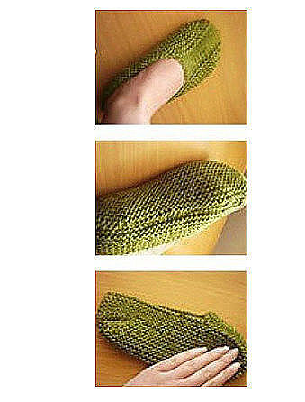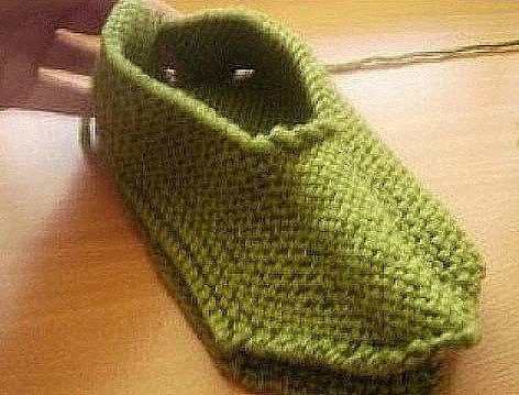 Размер тапочки 23 см. по длине. Плотность вязания: 20 петель на 20 рядов — образец 10*10 см. Подошва: Набрать 26 петель 1 ряд: вязать все петли лицевыми, в начале и в конце прибавить по одной петле (28 петель) 2 ряд: все лицевые петли 3 — 16 ряд: повтор ряд. 1 и 2 (42 петли) 17 ряд: вязать лицевыми, в начале и в конце ряда провязать 2 петл. вместе лиц (40 петель) 18 ряд: все лицевые петли 19 — 32 ряд: повтор ряд. 17 и 18 (26 петли) Верх: 33 ряд: набрать 8 петель (петли пятки) и вязать лиц. (34 петель) 34 ряд: все петли лиц. в конце прибавить 1 петлю (35 петель) 35 ряд: лицевые петли 36-48 ряд: повтор ряд. 34 и 35 (42 петли) 49 ряд: закрыть 24 петли, ряд закончить лиц (18 петель) 50 ряд: лицевые петли 51 ряд: изн. петли 52-56 ряд: повтор ряд. 50 и 51 (18 петли) 57 ряд: набрать петли 24 петли и вязать лиц. (42 петли) 58 ряд: лиц.петли, в конце провязать 2 вместе лиц. (41 петля) 59 ряд: лиц. петли 60-73 ряд: повтор ряд. 58 и 59 (34 петл.)