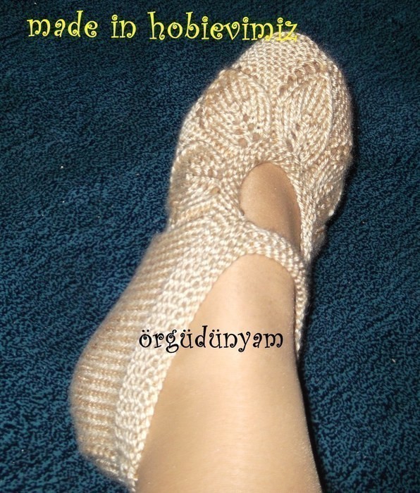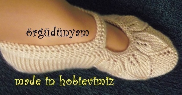 Тапочек - башмачок пятилистник спицами , пошаговое МК