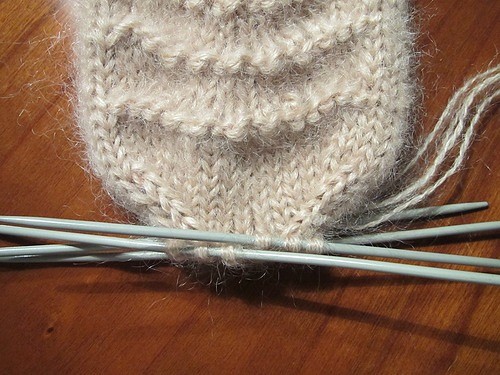 Провязав необходимую длину носка, переходим к вязанию мыска.