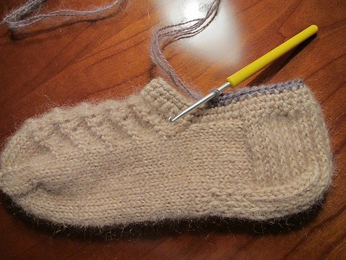 Заключительный этап вязания - обвязываем носочек крючком.