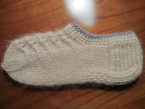 Вязание петель на подошве после колпачка на след. фотографии. На фотографии хорошо виден рисунок чешуйки.