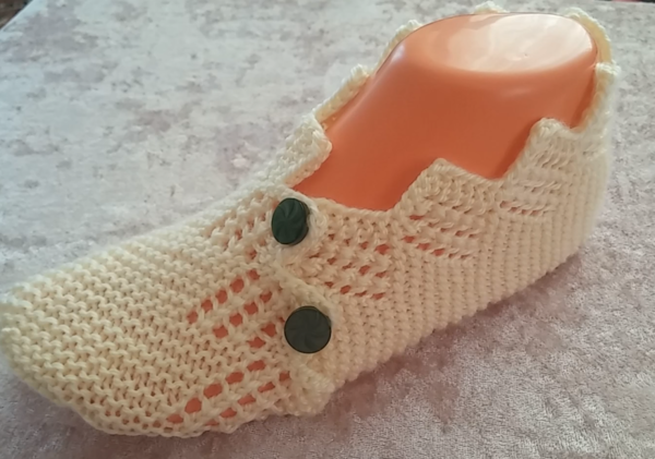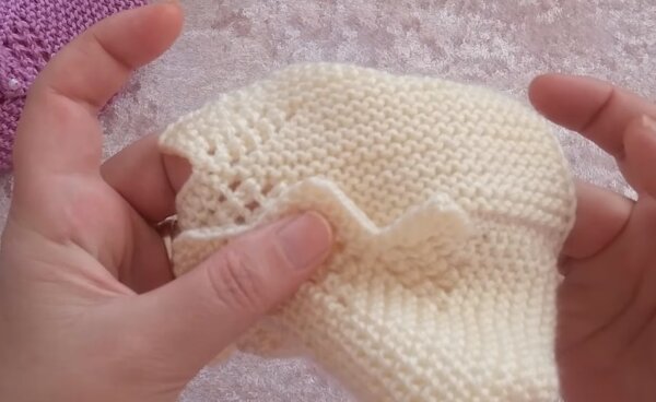 Небольшой вязаный "отросток" только платочной вязкой и без зубчиков - это своеобразный скос для подошвы и часть носочка следка...