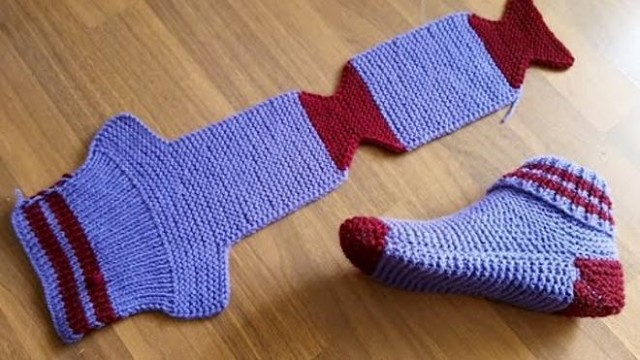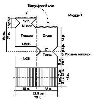 Для тех, кто не любит использовать чулочные спицы и вязать по кругу Размер: 37-38 легко увеличить или уменьшить . Материалы: пряжа AlizeLanaGold (49% шерсть, 51% акрил, 100 г./240 м.) спицы 3.5 мм. Набрать 44 петли Вязать резинкой 1 лиц./1 изн. 34 ряда Дальше платочным узором 12 рядов След. ряд: закрыть 11 петель, вязать лицевыми След. ряд: закрыть 11 петель, вязать лицевыми = 22 петли. ** Дальше вязать платочным узором – 40 рядов. Пятка : ------------- 1- я половина *1-й ряд: кром. петля, 2 вместе лиц. влево, вязать лицевыми до последних 3х петель, 2 вместе лиц. вправо, кром. петля. 2-й ряд: кром. петля, вязать лицевыми до последней петли, кром. петля. 3-12 ряды: повторять 1-2 ряды. 2-я половина пятки : 13-й ряд: кром. петля, накид, вязать лицевыми до последней петли, накид, кром. петля 14-й ряд: кром. петля, 1 лиц. за задн. стенку, вязать лицевыми до последних 2х петель, 1 лиц. за задн. стенку, кром. петля. 15-24 ряды : повторить 13-14 ряды **.
