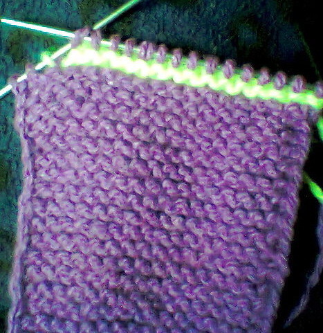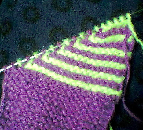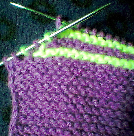 Все 18 петель : 2 ряда дополнительным цветом 2 ряда основным цветом