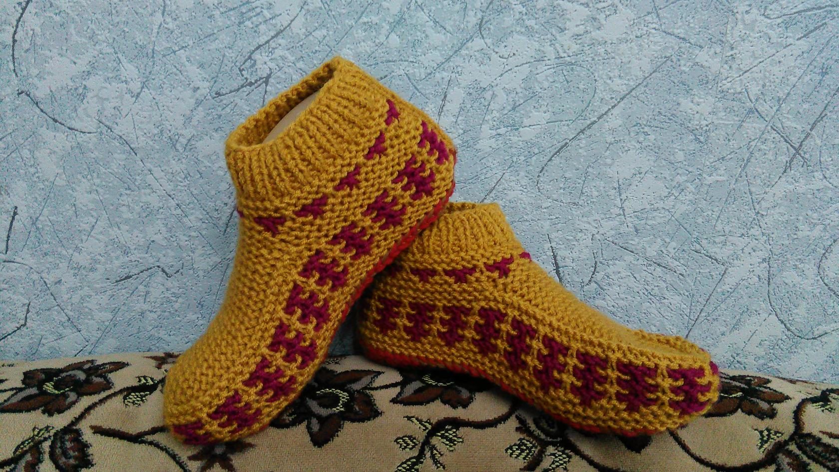 Тапочки спицами. Автор Гуля Х.Klubokhttp://klubok.work/1/53/8107/Klubokhttps://klubok.work/css/image/top-logo-en.pngУзор на мыске можно использовать самый разный. Я вязала так: ЛР- 1лиц, 1 изн. ИР- все лиц. Повторять с 3ряда. Почему то он называется “кукуруза”, хотя под этим названием я знаю совсем другой узор. Если нужен размер больше или меньше, соответственно мысок вяжем длиннее или короче.