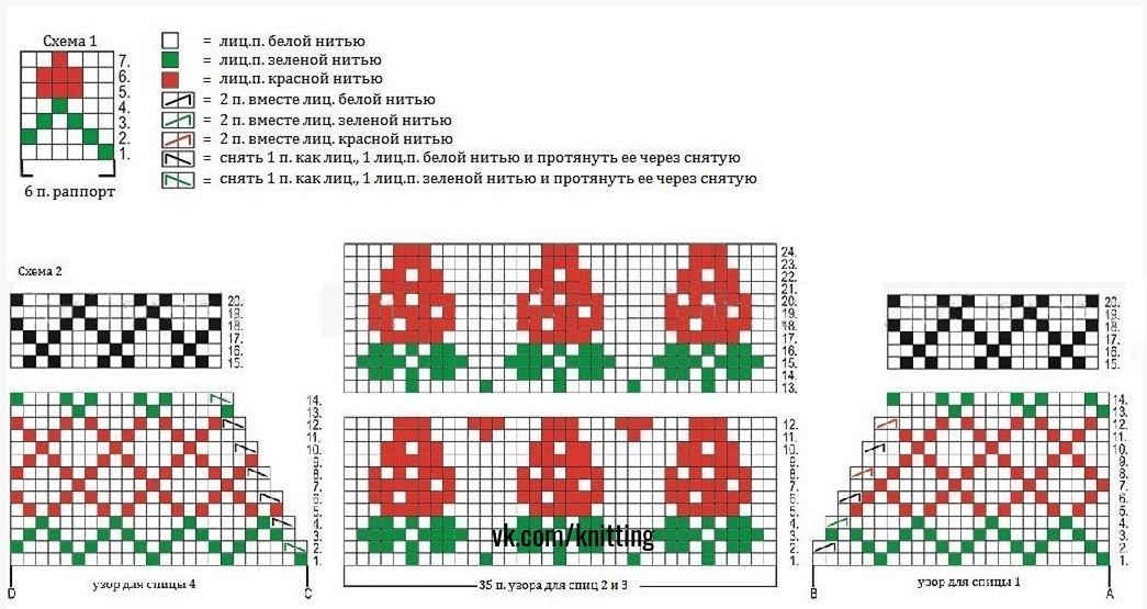 Описание вязания носков с жаккардовым узором «Земляника» спицами