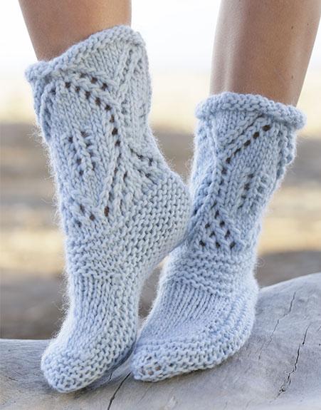 Then work back and forth on needle as follows: K 1 row (= RS). Next row (= WS): Knit the first 14-14-15 sts in garter st and slip them on a stitch holder, inc 1 st, P next 9-11-11 sts, inc 1 st, work the last 14-14-15 sts and slip these 14-14-15 sts on a stitch holder. Cut the yarn. Knit stocking st over the remaining 11-13-13 sts with 1 edge st I garter st until middle part measures 7-8½-10 cm, dec 1 edge st in each side from WS= 9-11-11 sts, slip these sts on 1 stitch holder. Cut the yarn. Knit in garter st back and forth until finished. Work next row like this (= RS): Knit sts from stitch holder and - AT THE SAME TIME knit up 12-14-16 sts on each side of middle piece inside 1 edge st = 61-67-73 sts. NOW MEASURE PIECE FROM HERE! Insert 1 marker mid front on toe. When piece measures 2 cm, K 2 tog on each side of marker. Repeat dec every other row – AT THE SAME TIME when piece measures 4-4-5 cm, K 2 tog inside 1 edge st in each side of piece, repeat dec in the side every other row (= 4 sts dec in total every other row). Cast off when piece measures 5-5-6 cm. Knit another slipper the same way.