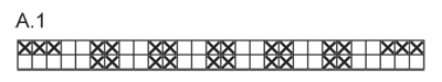Cast on 22 sts on needle size 6 mm with Andes. Work 4 ridges AT THE SAME TIME on last row inc 6 sts evenly = 28 sts. Work according to A.1 (= 28 sts) until piece measures approx. 35-36-38 cm. Work 4 ridges AT THE SAME TIME on 1st row dec 6 sts evenly = 22 sts. Cast off. Place cast-off edge over cast-on edge and sew on 3 buttons for decoration through ridges on the leg.