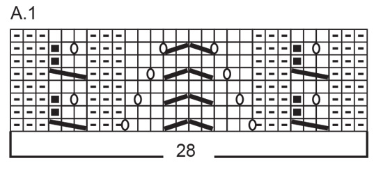 Continue until piece measures approx. 12 cm - finish after 1 whole repetition of A.1 vertically.
