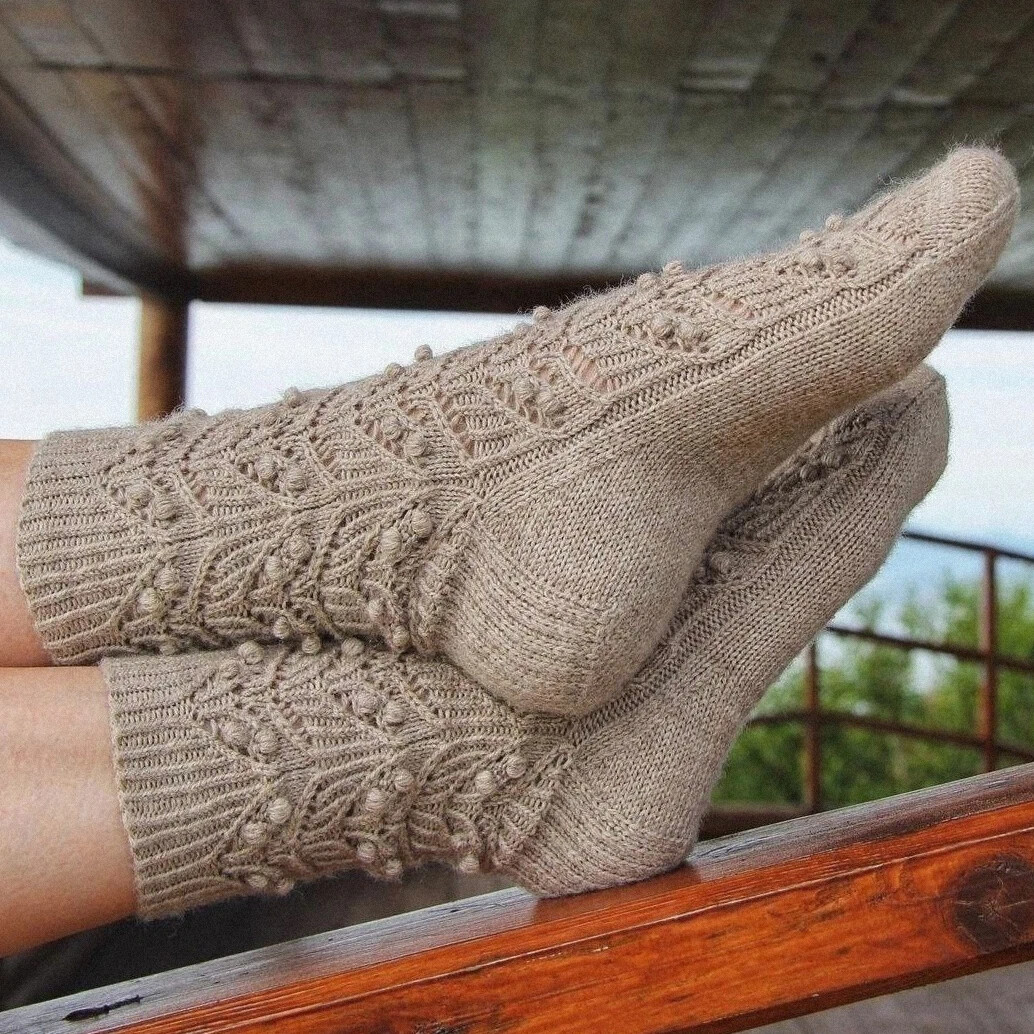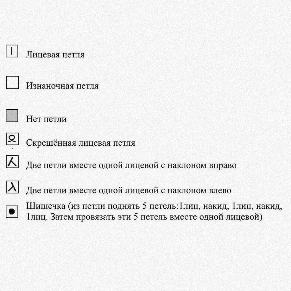 bobble (из петли поднять 5 петель:1 лиц., 1 накид, 1 лиц., 1 накид, 1 лиц. Затем провязать эти 5 петель вместе одной лицевой)