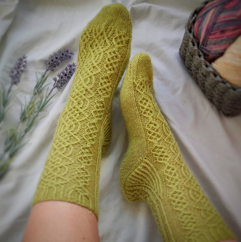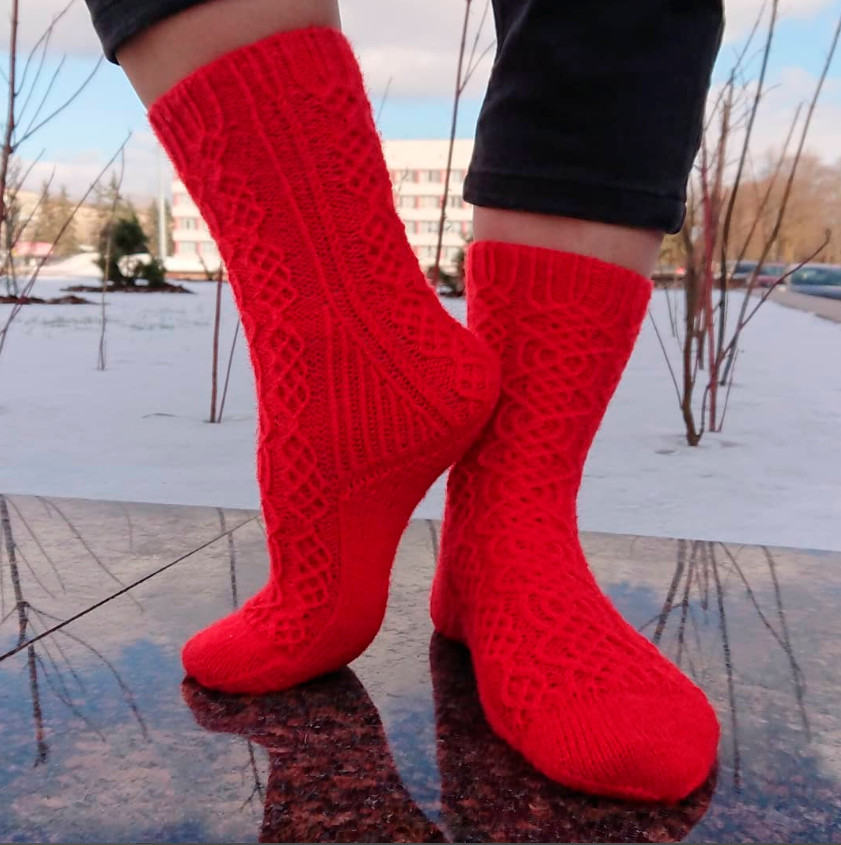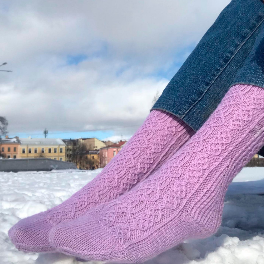 Закрепить и спрятать все кончики нитей. Провести ВТО — в теплой воде со стиральным средством для шерсти замочить носочки минут на 10, деликатно постирать, сполоснуть в теплой воде и высушить на блокаторах соответствующего размера.