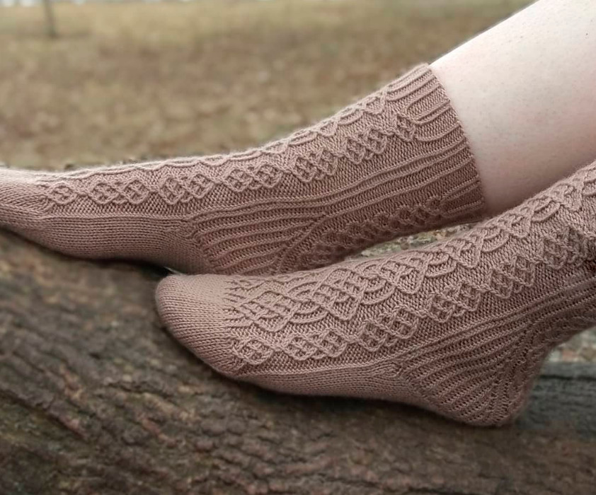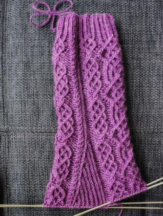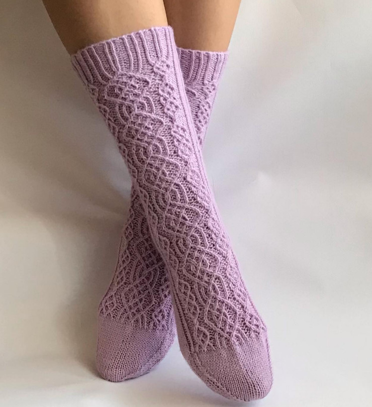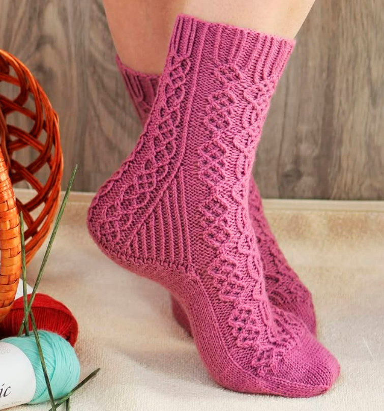 Стопу вязать, повторяя раппорт арана верхней части до необходимой длины. Закончить аран, провязав 1й или 10й ряд узора.