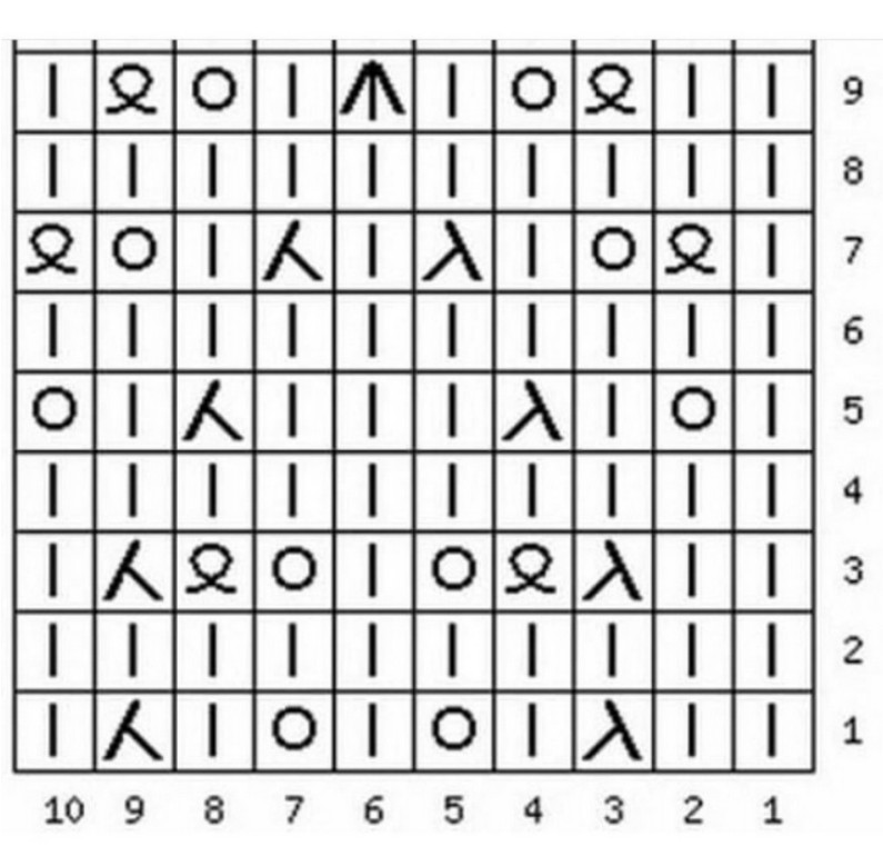 Вяжу манжету резинкой 1*1 (лицевые петли скрещенные) 1п. обязательно лицевая, чтобы обеспечить плавный переход от резинки к рисунку — 10 рядов.