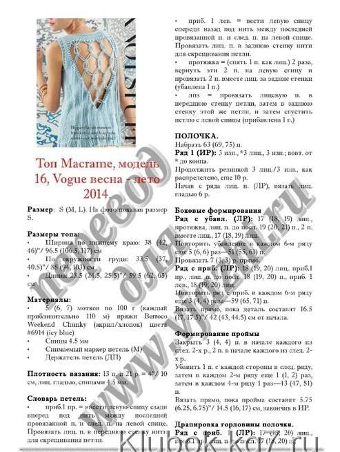 Вязание топа Macrame, модель 16, Vogue ss 2014.Klubokhttp://klubok.work/1/82/4509/Klubokhttps://klubok.work/css/image/top-logo-en.png