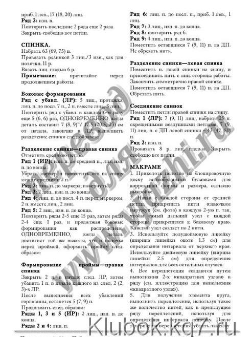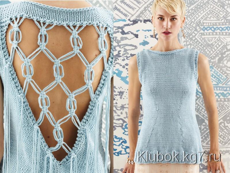 Вязание топа полуприлегающего силуэта с элементами макраме на глубоком V- образном вырезе спинки