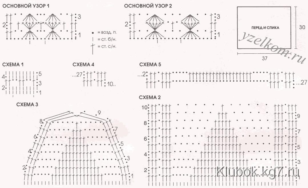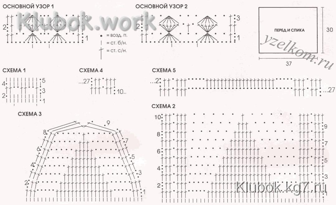 бретель: вязать на 32 п. перед последними 13 п. переда по схеме 3. Далее с 10 по