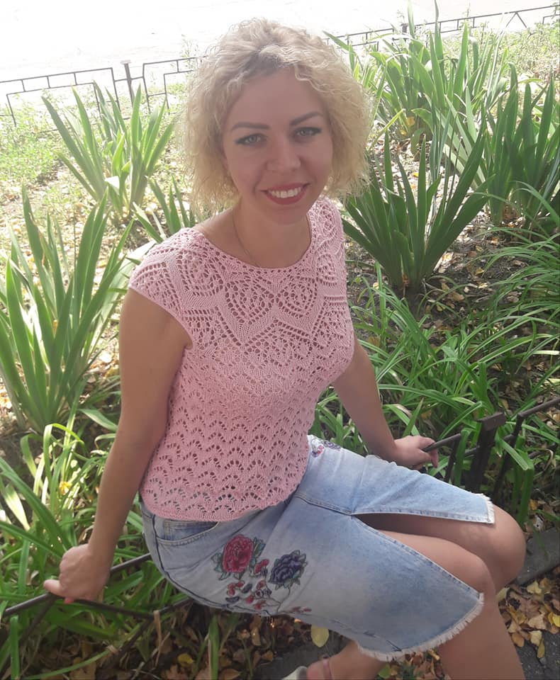 лиц. гладью на спицах № 4: 20 п. и 24 р. = 10 х 10 см.