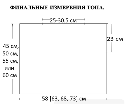 Длина топа, на выбор: 45 см, 50 см, 55 см или 60 см.