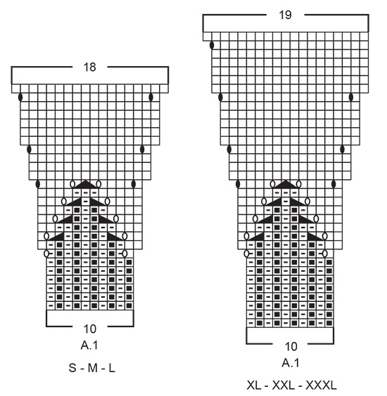 When A.1 has been completed in height there are 216-234-252-285-304-323 stitches.