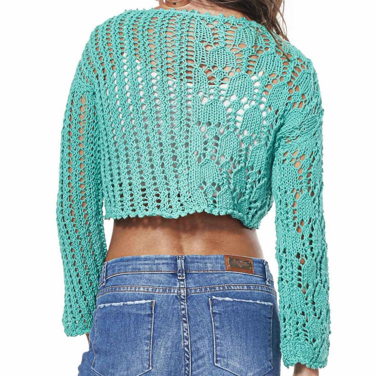 Перейти на крючок 4 мм и связать край отделкой по вырезу горловины, низу и манжетам, следуя схеме 2 и раппорту узора.