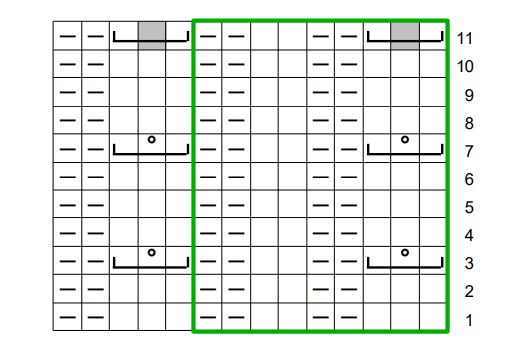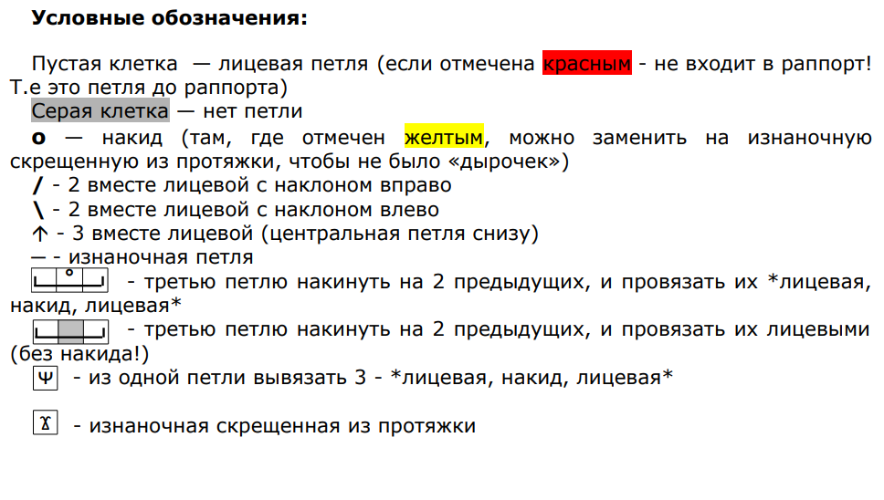 1. Пустая клетка — лицевая петля (если отмечена красным - не входит в раппорт! Т.е это петля до раппорта)