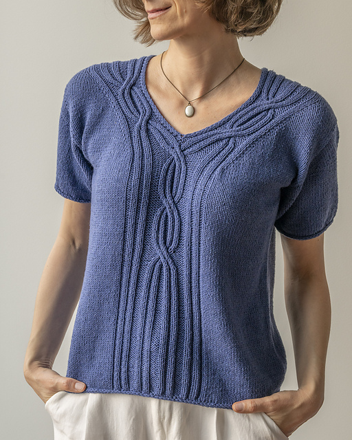 Футболка Sylvan отличается красивой, необычной линией кос, переплетающейся и покачивающейся по спине, вырезу и рукавам. Футболку легко надевать или снимать, она стильная и интересная. Продуманные детали и отделка обеспечивают современный вид с оттенком элегантности. Ее название, «лесная», связано с тем, что косы как - будто текут по всему проекту, напоминая переплетения ветвей и корней деревьев.