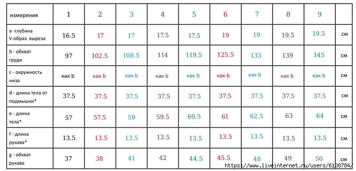 Размеры: 1 (2/ 3/ 4/ 5) (6/ 7/ 8/ 9) рассчитаны на ношение с припуском на свободу облегания около 10–20 см.