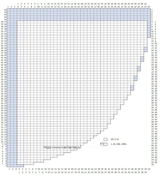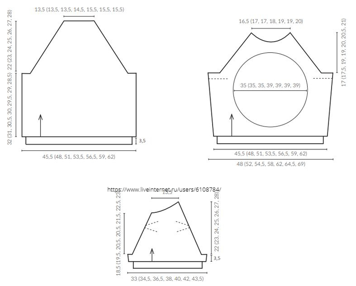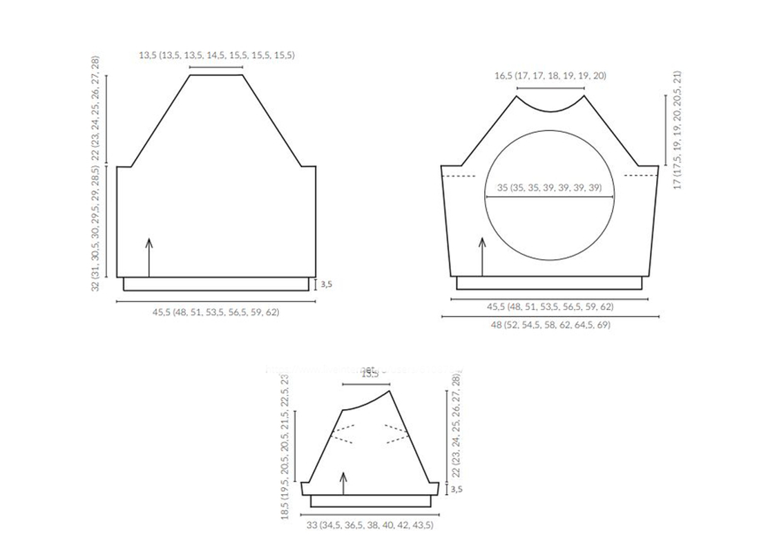 4. Описание дается для размера XS, цифры в скобках соответствуют размерам S, M, L, XL, XXL и XXXL. Если в описании встречается только одна цифра, она относится ко всем размерам.
