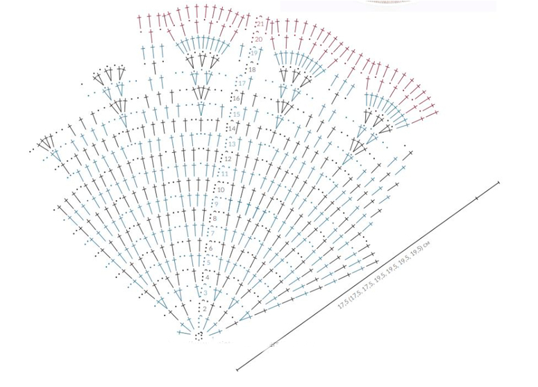 2-19 круговые ряды: вязать по схеме (всего 19 раппортов-«лучиков»).