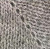 19 п. x 27 рядов лицевой гладью по кругу на спицах 4 мм = 10 x 10 см, используя две нити шелкового мохера