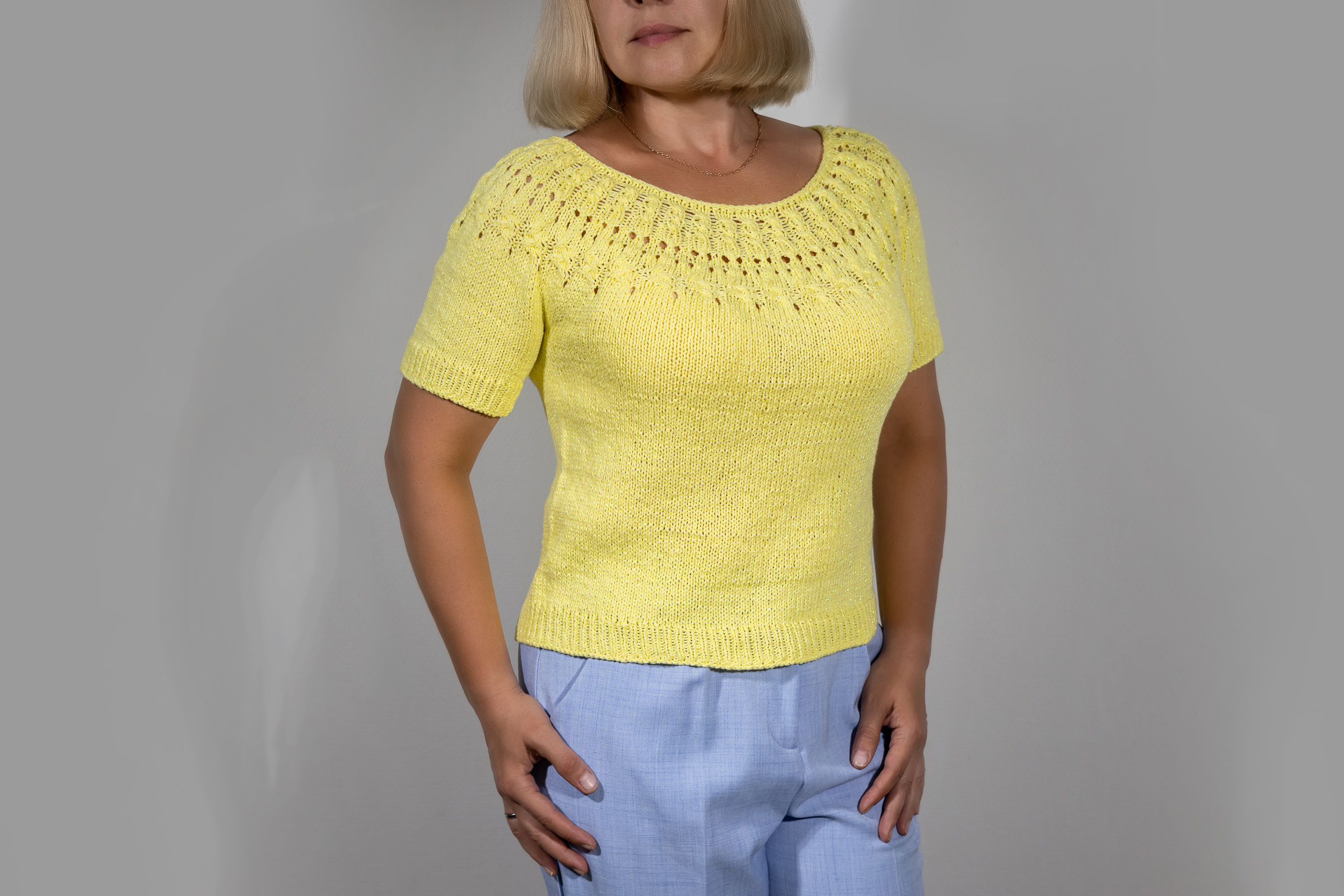 Яркая женская летняя кофточка из хлопка с ажурной кокеткойKlubokhttp://klubok.work/1/82/9144/Klubokhttps://klubok.work/css/image/top-logo-en.pngСлова автора:
