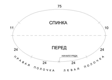 Спинка: 10 П, М, 69 П, М, 9 П, М;