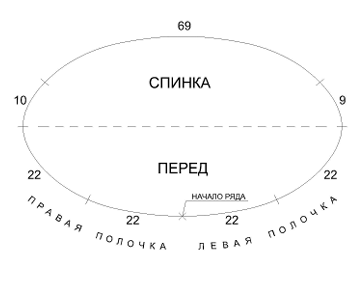 Спинка: 10 П – 1–64 ряд Схемы 2, 69 ЛП, 9 П – 1–64 ряд Схемы 3;