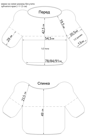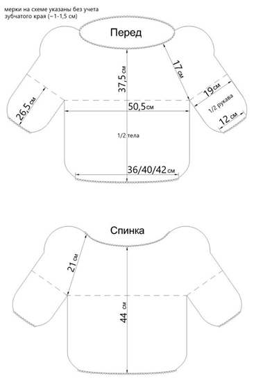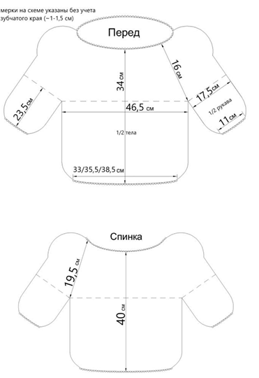 Данное описание предусматривает укороченную длину блузки. Вы можете отрегулировать её в соответствии с своими предпочтениями, добавив ½ раппорта или целый раппорт.