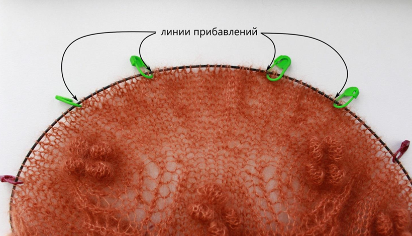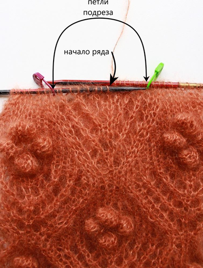 (Подписи на фото: «петли подреза», «начало ряда».)