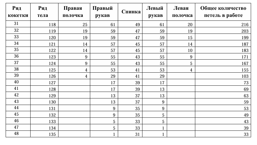 Регланные убавления в рукавах выполняются только до 139 ряда включительно,