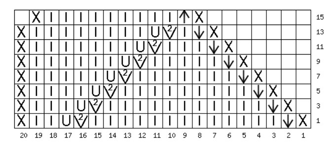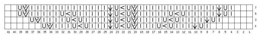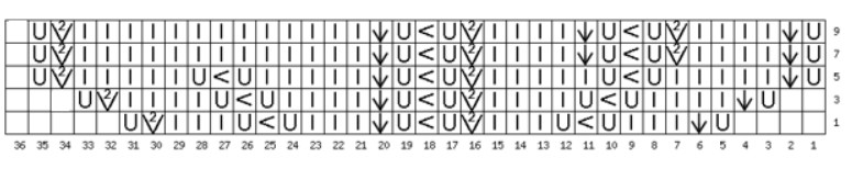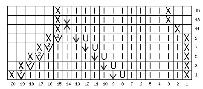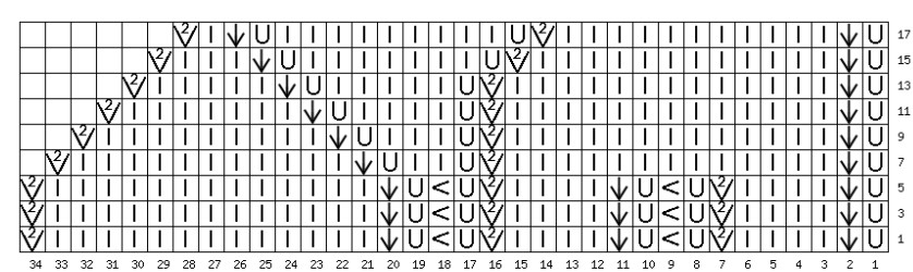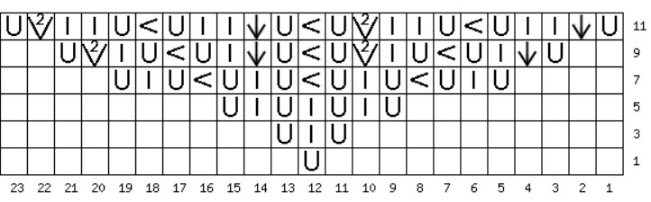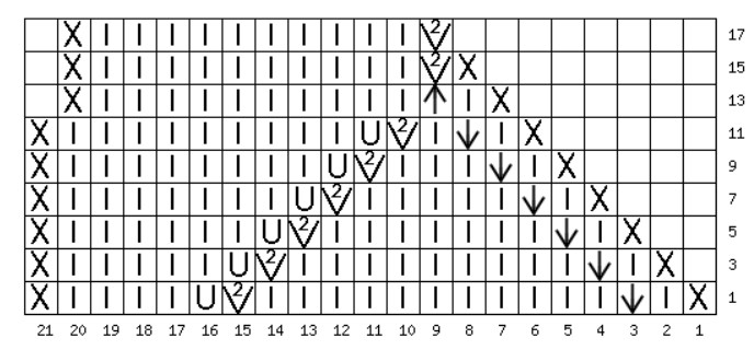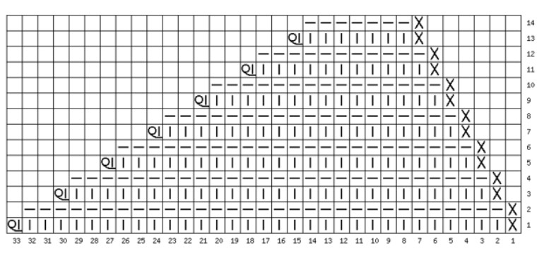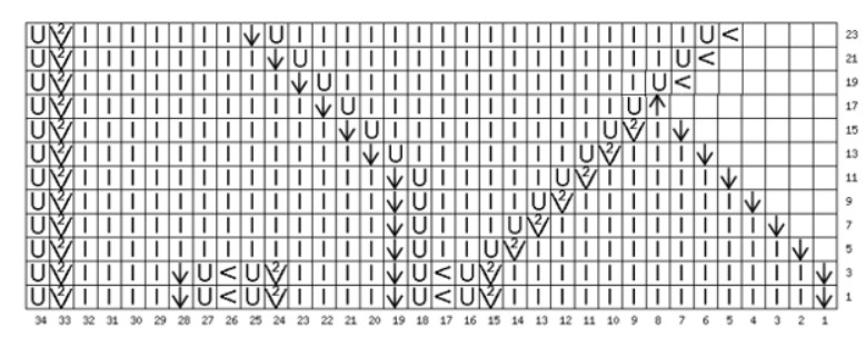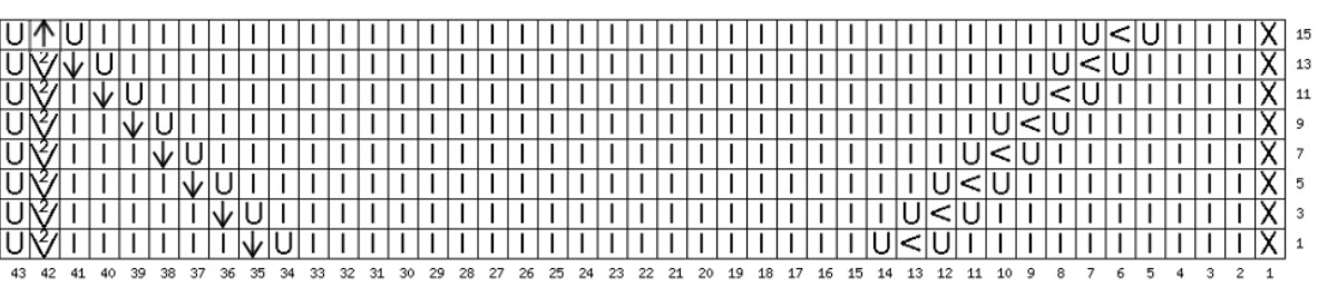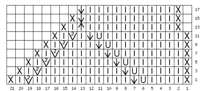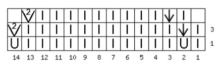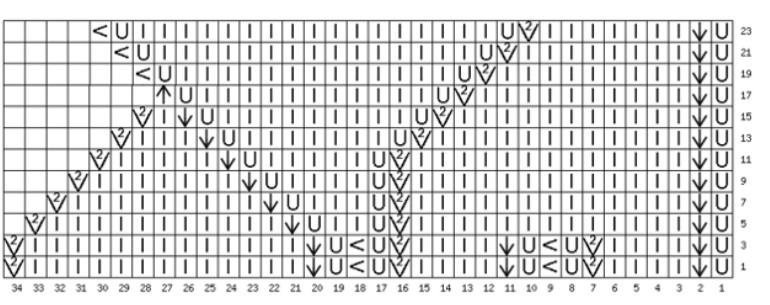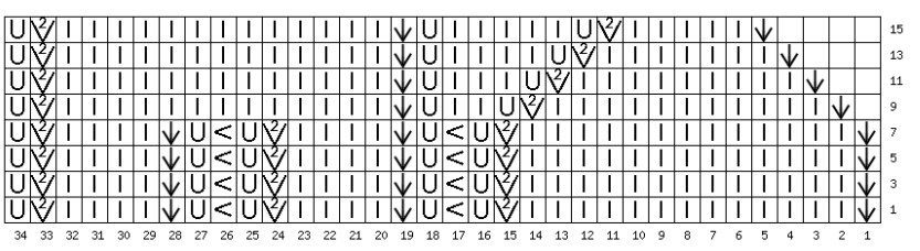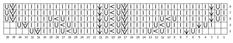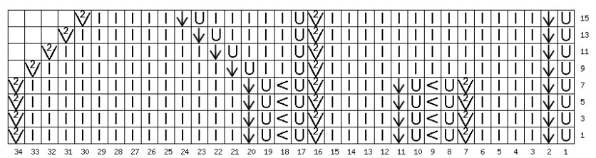 Начиная с 13го ряда после каждого раппорта схемы 1 провязываем ряд из схемы 2