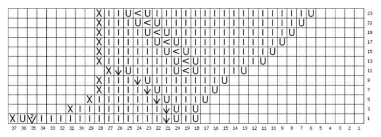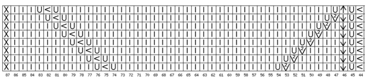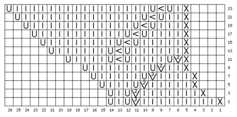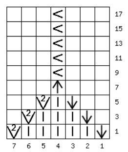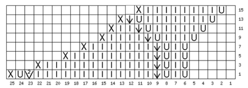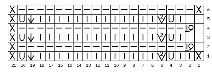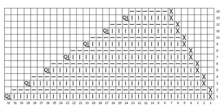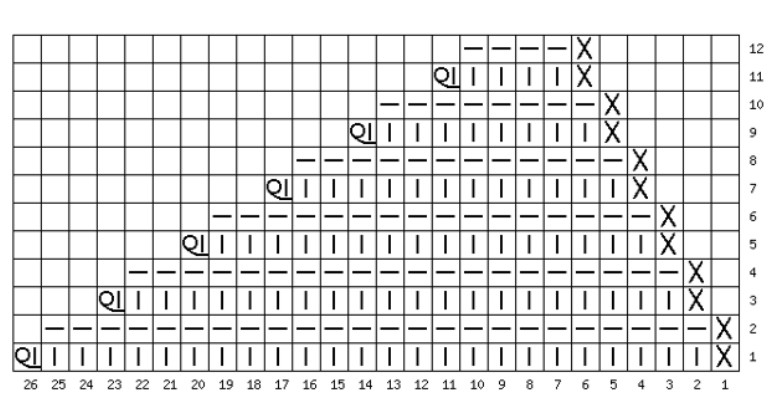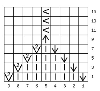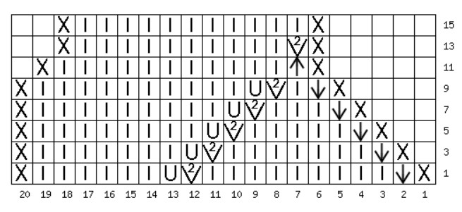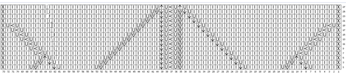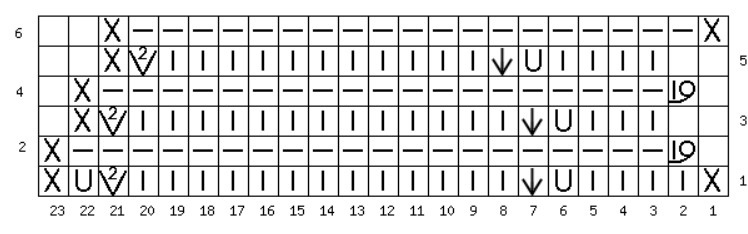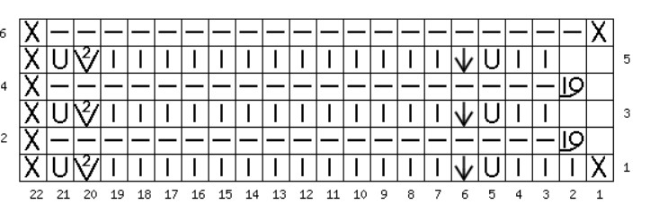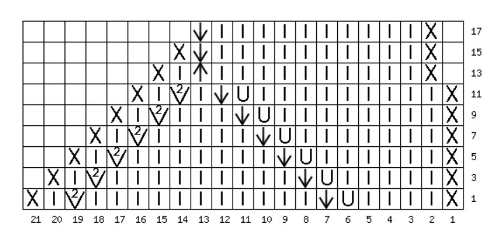 Начиная с 13го ряда после каждого раппорта схемы 1 провязываем ряд из схемы 2