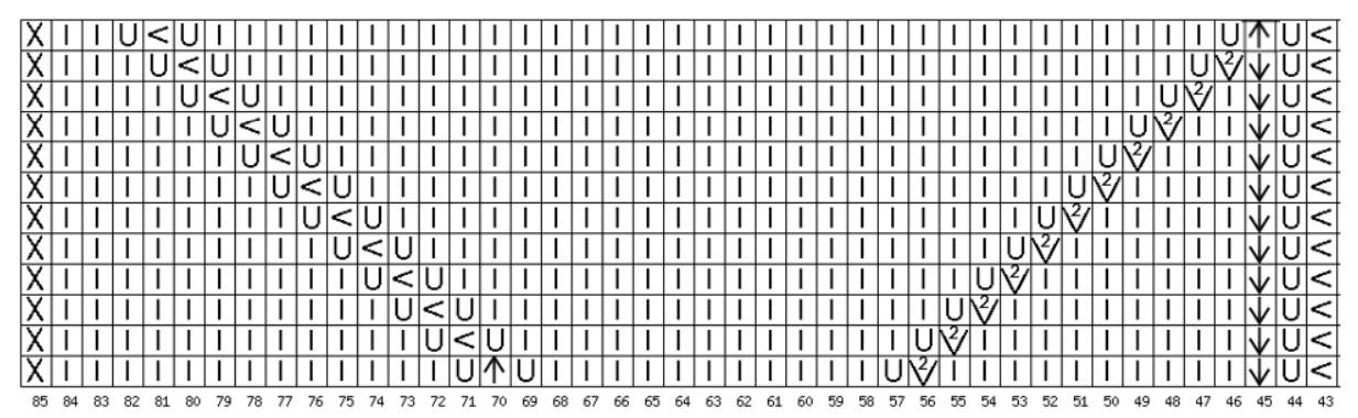 цифра 1 – это значит что нужно закрыть 1 петлю в начале 85го ряда, и 1 петлю в начале 86го ряда.