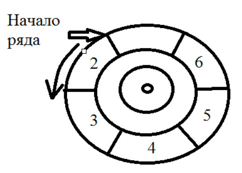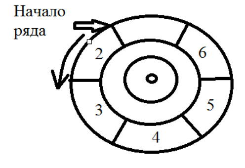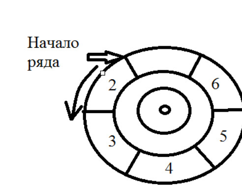 Ряд №7 – закрыть 7 петель в центре схемы №1 (на схеме обозначены