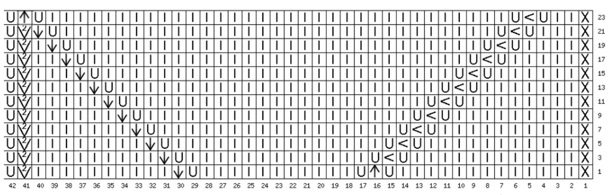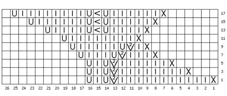 Внимание! Убавления указаны для пар рядов. Это значит, что убавления делаются в начале каждого