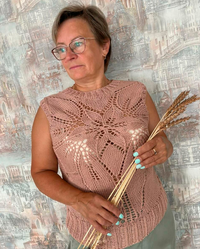 Плотность вязания 15 петель х 26 рядов (10х10 см).