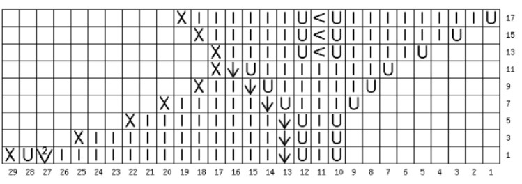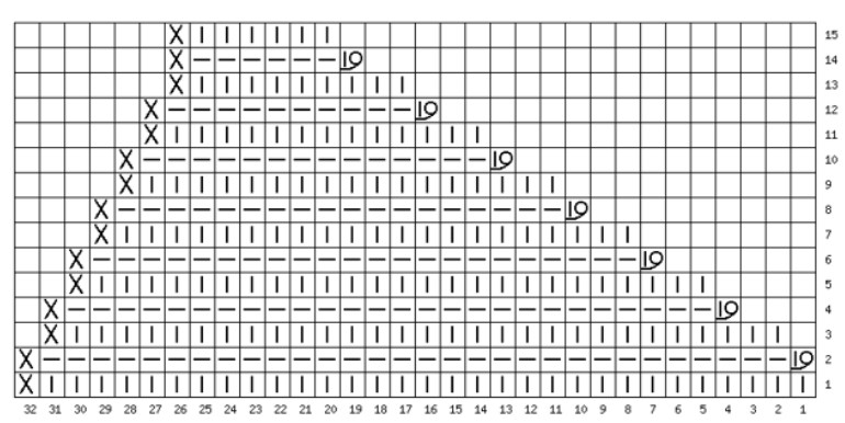 Ряд 16 после схемы 2 вяжем полностью до противоположного бокового