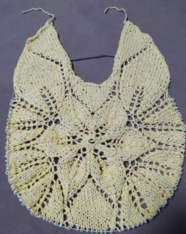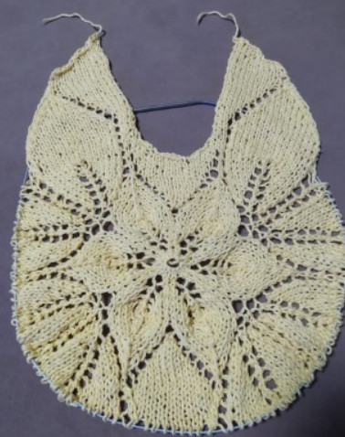Сначала вяжем правую половину. Деталь расположена лицевой стороной вверх. Рабочая нить находится