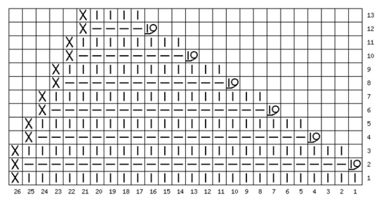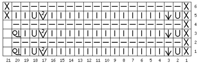 Вяжем по схеме 1. На схеме отображен только один раппорт.