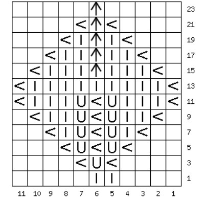 Первые 6 рядов – укороченные. Вяжем по схеме ниже.