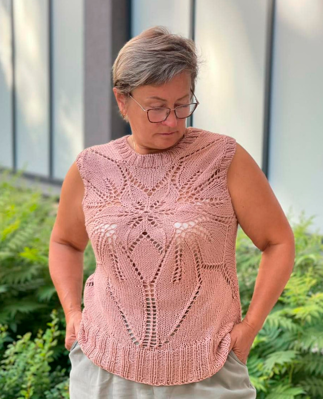 В 19м, 21 и 23 рядах закройте по 4 петли, формируя плечевой скос.