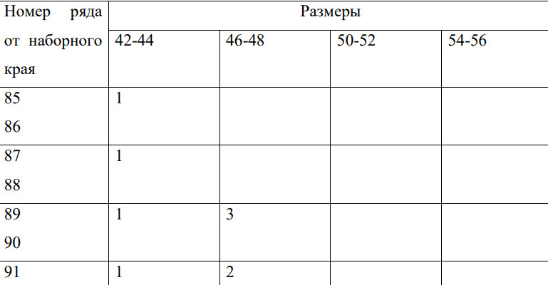 ряда указанного в левом столбике. Например, в столбике стоит 85, 86, а в ячейке вашего размера указана